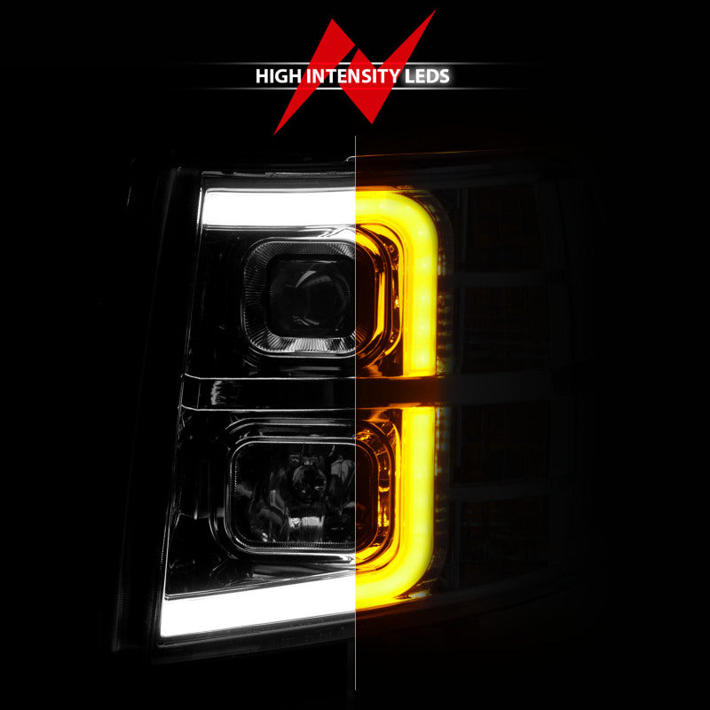 Proyector ANZO 2007-2013 Chevrolet Silverado 1500 con barra de luces, carcasa cromada y secuencial