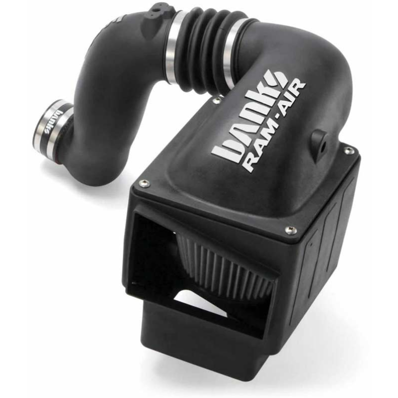 The Banks Power 42180-D Ram-Air Intake System with Dry Filter is an excellent upgrade for your 2010-2012 Dodge 6.7L Diesel. This Banks intake system helps increase the airflow of cool, dense air into your diesel engine for more power while helping to enhance fuel economy. Thanks to the enclosed cold-air housing, huge inlet with a colossal dome-shaped filter, and streamlined internal design, this intake system flows 50% better than the stock filter and airbox. The exclusive 4.5" bellows allow for engine movement to ensure this intake system lasts for many years to come.
