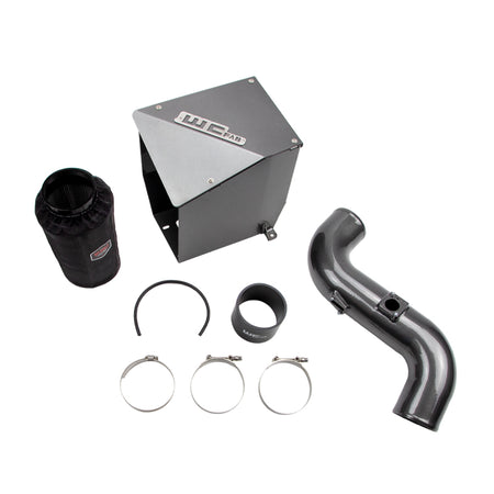 Kit de admisión WCFab para GM LML 6.6L Duramax de 4" (10 cm) con caja de aire 2011-2016. Este tubo de admisión de aluminio de alto flujo y la carcasa de la caja de aire, con filtro seco, reemplazan las restrictivas piezas de plástico de fábrica de su motor diésel para un mejor rendimiento. El nuevo diseño aumenta significativamente el flujo de aire hacia el turbo, lo que produce mayor potencia y torque, una respuesta del acelerador más rápida y temperaturas de admisión más bajas al aspirar el aire frío a través del guardabarros interior. La construcción íntegramente en aluminio cuenta con tuberías de gran diámetro de 4" con curvas aerodinámicas suaves para mejorar la velocidad y el volumen del aire de admisión, y proporcionar un sonido más agresivo del motor y del turbo durante la aceleración. Los herrajes de alta calidad, la funda de silicona, los sellos y las abrazaderas de acero inoxidable con pernos en T garantizan una durabilidad óptima y una fácil instalación. La tapa extraíble de la caja de aire facilita la inspección visual y el mantenimiento del filtro WCFab, con la cubierta hidrofóbica del prefiltro incluida, para mantener el sensor MAF, el turbo y las vías respiratorias del motor libres de contaminantes. Conjunto completo terminado en el color de pintura en polvo personalizado exclusivo de WCFab de su elección para una apariencia tan única como su camión.