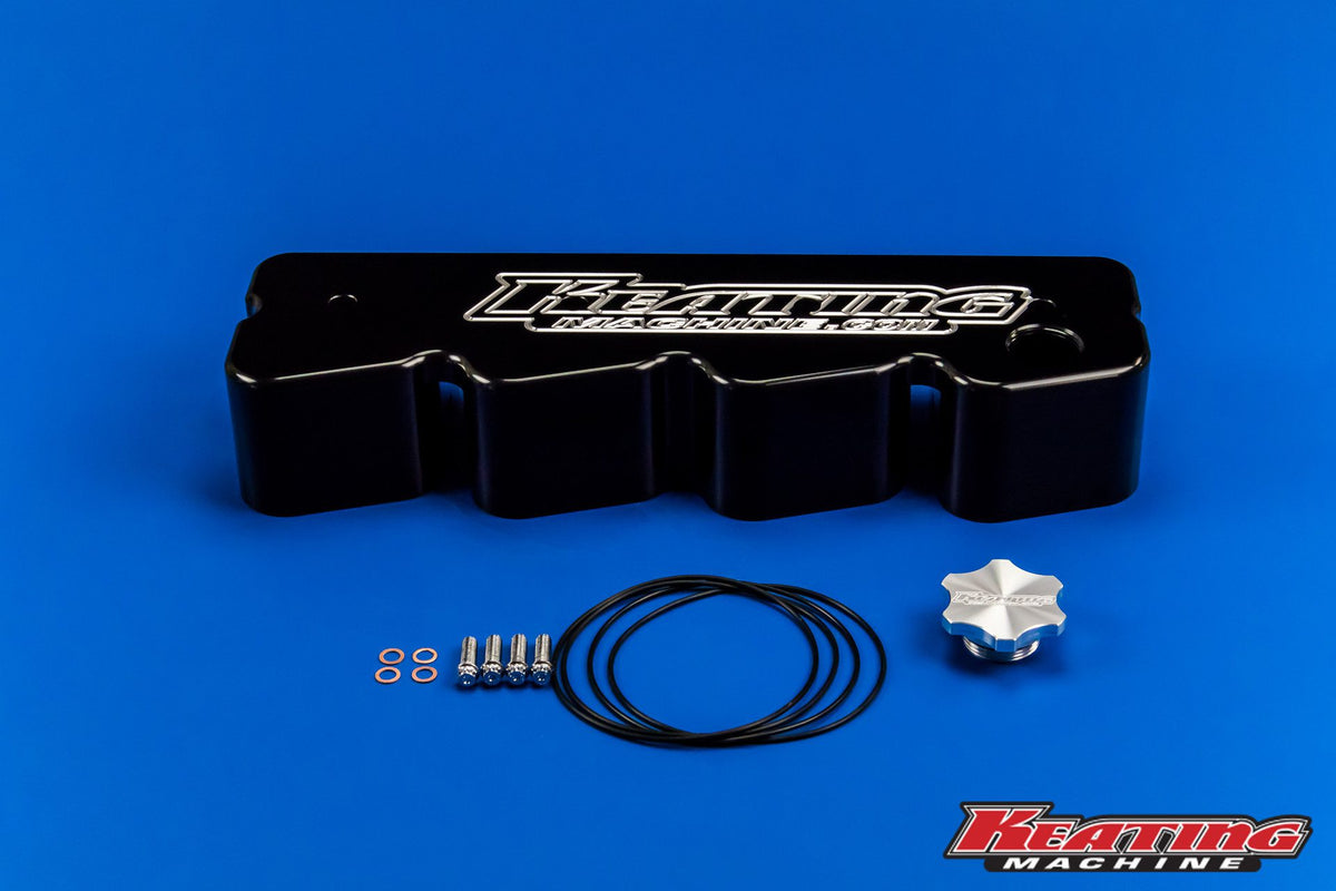 Couvercle de soupape à billettes Keating Machine 4BT Cummins – cranté pour les lignes d'origine, anodisé noir