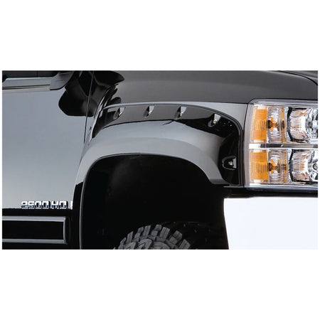 Pour une utilisation tout-terrain extrême, rien de tel que les élargisseurs d'ailes découpés Bushwacker. Chaque jeu d'élargisseurs d'ailes découpés est conçu individuellement pour votre camion, afin d'optimiser le débattement des roues tout-terrain et de maintenir une couverture adéquate des pneus. Cette approche personnalisée se traduit par une apparence plus lisse, une plus grande résistance et une installation plus facile grâce à la visserie robuste en acier inoxydable. Les élargisseurs d'ailes découpés sont fabriqués en Dura-Flex 2000, un matériau épais et indéformable, notre propre matériau exclusif, conçu pour une durabilité et une flexibilité accrues dans des conditions difficiles. Leur protection UV prévient le farinage, tandis que leur finition noire mate de qualité professionnelle est superbe telle quelle ou peinte sur mesure pour créer votre propre style.
