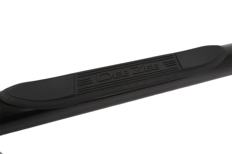 Marchepieds Dee Zee Nerf - Un marchepied latéral tubulaire pour votre véhicule. Fabriqué en acier thermolaqué noir. Son design rond de 7,6 cm offre une marche discrète. Les patins en plastique moulé offrent des zones antidérapantes. Le renfort sur mesure est dissimulé par des tubes coudés à 90 degrés et est recouvert d'un revêtement antirouille. Toute la quincaillerie est incluse ; aucun perçage requis.