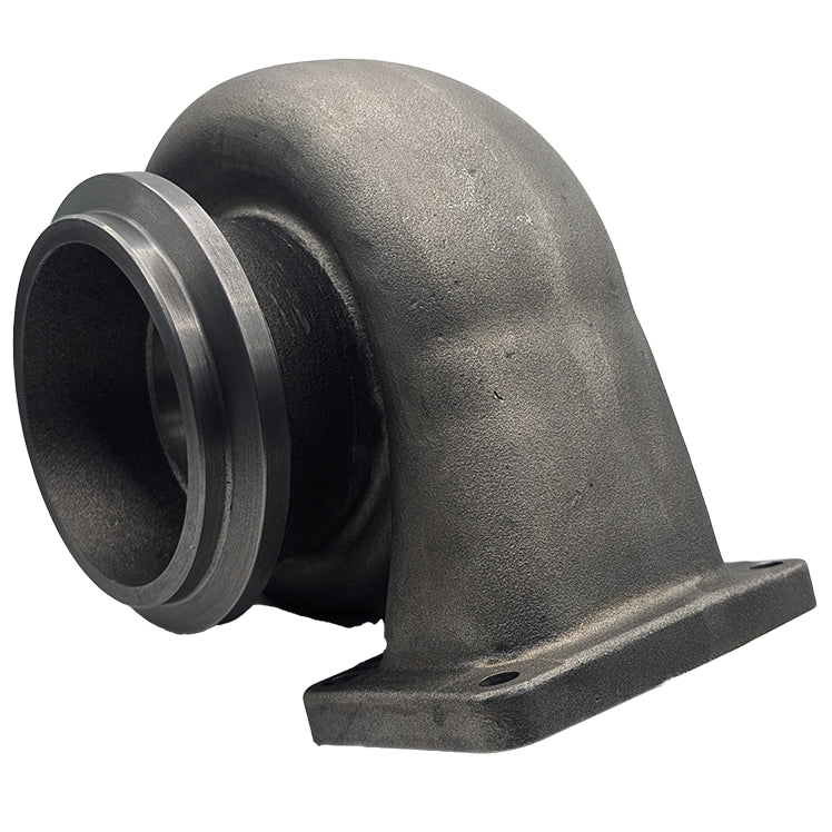 Ce carter de turbine Power Driven utilise une conception simple volute non divisée . Cette conception est supérieure lorsque le turbo est utilisé comme turbocompresseur de grande taille ou turbocompresseur atmosphérique dans un système de turbocompresseur compound. Les carters standard divisés à double volute sont conçus pour exploiter l'énergie d'impulsion des gaz d'échappement de chaque cylindre, ce qui permet au turbo de monter plus rapidement en régime lorsqu'il est monté sur un collecteur d'échappement. Lorsque le turbo reçoit ses gaz d'échappement de la sortie d'un turbocompresseur plus petit, l'énergie d'impulsion disparaît. À ce stade, un carter divisé est moins efficace qu'un carter non divisé. Ce carter était initialement un carter A/R de 1,15, puis nous avons retiré le diviseur. Sans celui-ci, il se comporte davantage comme un carter A/R de 1,35, évacuant même le carter A/R standard de 1,32. Nous recommandons ce carter pour tout turbo monté comme turbocompresseur de grande taille dans un système de turbocompresseur compound.