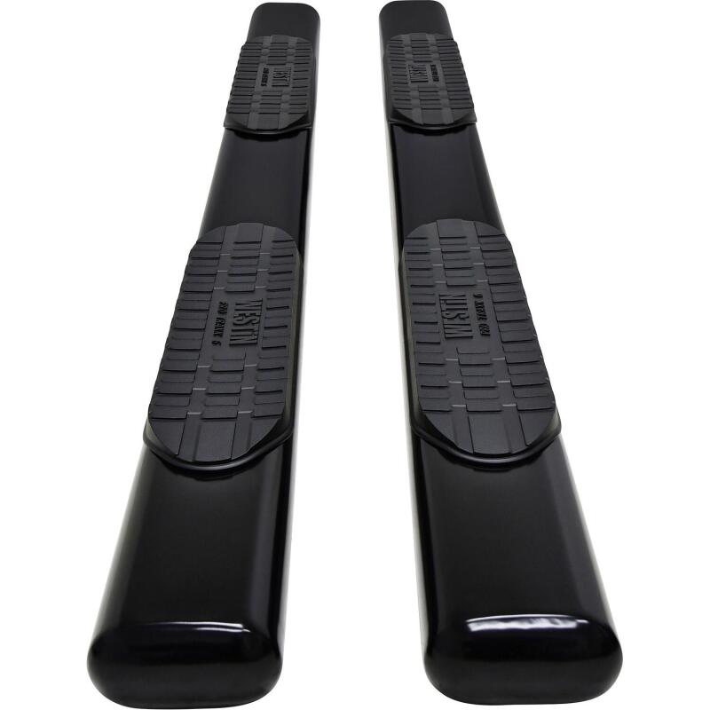 Westin PRO TRAXX 6 for full-sized trucks are cab-length steps for ideal functionality and cab access. They feature extra heavy-duty bold step pads and a unique oval tube shape in a straight tube design. Applications are vehicle specific bolt-on, no-drill and rocker panel mounted. Available in polished stainless steel, backed by a lifetime warranty, and black powder coated mild steel, backed by a 3 year warranty.