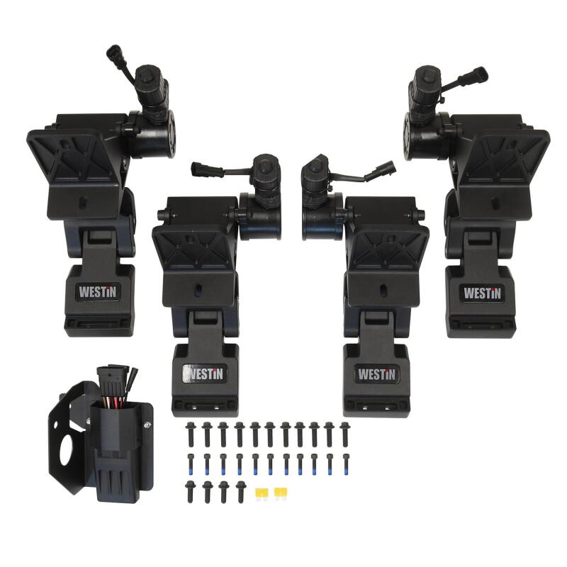 Introducing the all-new Westin Pro-e Power Running Boards, a superior upgrade that combines the functionality and appearance of your Truck, Bronco, Jeep or SUV. The Pro-e Power Running Boards are designed with a practical feature that automatically deploys when the vehicle's door is opened. This allows for easy entry and exit. When the door is closed, the running boards smoothly retract, seamlessly integrating with the vehicle's body and maintaining its sleek appearance.Equipped with two waterproof IP68 rated motors per side, these running boards are engineered for durability and reliability in any weather condition. The integrated LED lights illuminate the 6-inch wide, durable aluminum step surface, ensuring enhanced visibility and safety. Whether it's day or night, you can confidently step onto these running boards with their impressive weight capacity of up to 300 lbs. per side.The Pro-e Power Running Boards are constructed from corrosion-resistant aluminum and finished with a durable textured black powder coat. The included vehicle-specific mounting brackets and hardware guarantee a seamless installation process, ensuring a perfect fit for your vehicle.