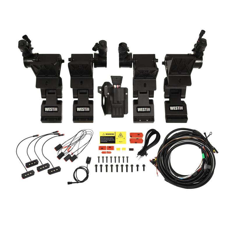 Introducing the all-new Westin Pro-e Power Running Boards, a superior upgrade that combines the functionality and appearance of your Truck, Bronco, Jeep or SUV. The Pro-e Power Running Boards are designed with a practical feature that automatically deploys when the vehicle's door is opened. This allows for easy entry and exit. When the door is closed, the running boards smoothly retract, seamlessly integrating with the vehicle's body and maintaining its sleek appearance.Equipped with two waterproof IP68 rated motors per side, these running boards are engineered for durability and reliability in any weather condition. The integrated LED lights illuminate the 6-inch wide, durable aluminum step surface, ensuring enhanced visibility and safety. Whether it's day or night, you can confidently step onto these running boards with their impressive weight capacity of up to 300 lbs. per side.The Pro-e Power Running Boards are constructed from corrosion-resistant aluminum and finished with a durable textured black powder coat. The included vehicle-specific mounting brackets and hardware guarantee a seamless installation process, ensuring a perfect fit for your vehicle.