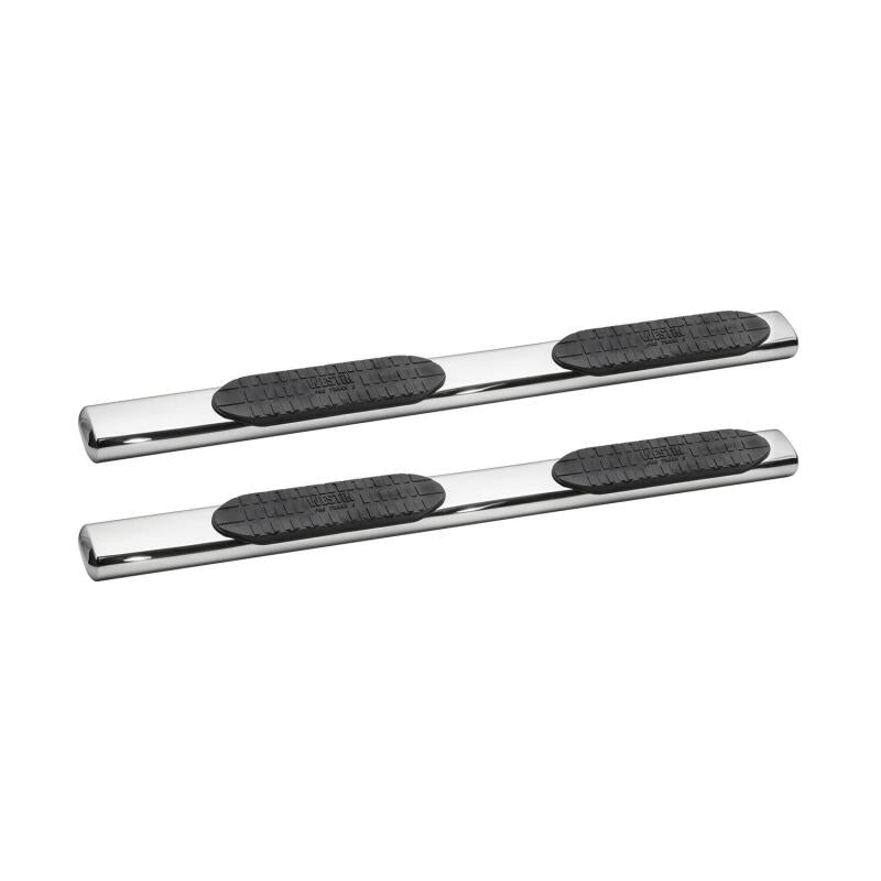 Westin PRO TRAXX 6 for full-sized trucks are cab-length steps for ideal functionality and cab access. They feature extra heavy-duty bold step pads and a unique oval tube shape in a straight tube design. Applications are vehicle specific bolt-on, no-drill and rocker panel mounted. Available in polished stainless steel, backed by a lifetime warranty, and black powder coated mild steel, backed by a 3 year warranty.