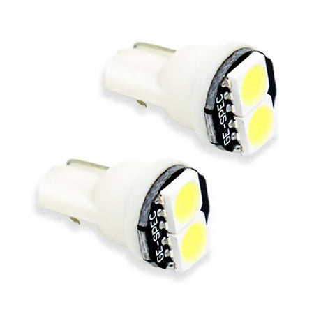 194 SMD2 LED Features Direct replacement for factory 194 incandescent bulb Adds more modern LED appearance Plug and play simple installation Overview Design. The 194 SMD2 LED bulb is a low-profile compact LED replacement for any 194-size bulb. The two 5050-size SMDs upgrade the factory yellowish incandescent bulb to a more modern LED appearance. The SMD2 was designed with an embedded load resistor and implanted diode for superior reliability. With its durable plastic connectors it will fit snugly in the socket and its light weight means it won't vibrate loose over time. Reliability. Unlike other bulbs on the market this bulb is built with constant-current circuitry along with transient suppression. That means this bulb will last for years not months with no flickering or failure. And like every Diode Dynamics product it's backed by an industry-leading three-year replacement warranty. Brightness. With 24 lumens of true measured output the SMD2 LED will provide similar light output to your original 5W 194 or 168 sized bulb. All Diode Dynamics LED lighting is rated with accurate measured lumen figures not calculations or guesses. We test the true output in-house and provide you the real numbers to compare. Colors. In addition to vibrant colors of blue red amber and green the 194 SMD2 is available in a cool white 6000K and warm white 3000K option as well. Whether you want a modern cool white appearance or a traditional warm white color we have the color to fit your need!