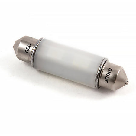 Features Direct replacement for factory 41mm festoon bulb Increased output with LED appearance Plug and play simple installation Overview Design. The 41mm HP6 LED bulb is a direct replacement for any 41mm-size bulb commonly found in door lights dome lights and trunk lights in many vehicles. Populated with eight high-power LEDs arranged in an omnidirectional pattern the HP6 upgrades the factory yellowish incandescent bulb to a more modern LED appearance while providing far more light output than the factory bulb. Thanks to the frosted cover the HP6 provides even light distribution and a clean factory-style appearance. With its durable metal terminals it will fit snugly in the socket and its light weight means it won't vibrate loose over time. Reliability. Unlike other bulbs on the market this bulb is built with constant-current circuitry along with transient suppression. That means this bulb will last for years not months with no flickering or failure. And like every Diode Dynamics product it's backed by an industry-leading three-year replacement warranty. Brightness. With 140 lumens of true measured output the HP6 LED will provide far more light output than your original 41mm-sized bulb. All Diode Dynamics LED lighting is rated with accurate measured lumen figures not calculations or guesses. We test the true output in-house and provide you the real numbers to compare. Colors. In addition to vibrant colors of blue and red the HP6 is available in a cool white 6000K option as well. Whether you want a modern cool white appearance or a color to show off your unique style we have the color to fit your need!
