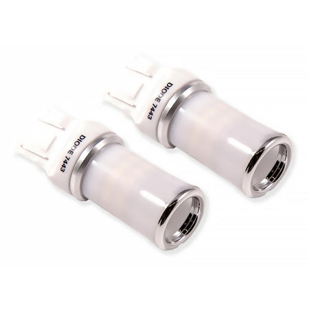 Features Brighter, cool white LED output Direct replacement compatible with reverse light bulb Plug and play, no modification with factory 7443 bulb size Improved visibility behind vehicle Available in multiple brightness levels Overview Brighter Backup. These replacement LED bulbs are a great way to improve the look and function of the reverse lights on your vehicle. You will get higher visibility at night, with a modern look. The installation is straightforward, with just a bulb swap - making this one of the easiest ways to improve your vehicle's lighting. Brightness. All Diode Dynamics LED lighting is rated with accurate, measured lumen figures, not calculations or guesses. We test the true output in-house, and provide you the real numbers to compare. Colors that match. At Diode Dynamics, we test each batch of products to ensure that all bulbs will match in color, and avoid various tints of white. These bulbs will match any other upgrades you may have from Diode Dynamics, for factory-style uniformity and a clean appearance. Reliability. Diode Dynamics LEDs are built with constant-current inductive circuitry, along with transient suppression. While more expensive than simple bulbs, this allows Diode Dynamics LEDs to last for years, with no flickering or failure. Experience. After over a decade in business, Diode Dynamics is one of the most trusted names in automotive LED lighting. We directly assemble and engineer our own products in the United States, allowing for higher quality and performance, with the newest and brightest LED technology. We pride ourselves in offering only the best possible LED solutions.