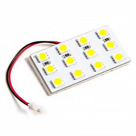 Features Direct replacement for factory 74 194 BA9S or festoon-size incandescent bulb Increased output with LED Appearance Plug and play simple installation Available in multiple color options Overview Upgrade. Add more light output and a modern appearance to your vehicle with the SMD12 LED Board. With the included adapters the SMD12 is a direct replacement for any 74 194 BA9S or festoon-size incandescent bulb. Populated with 12 SMD chips arranged in a 4x3 matrix the total light output far exceeds the original bulb. Best of all installation only takes minutes - simply take out your factory bulb and the SMD12 will fit snugly in the socket. If you wish the SMD12 can be mounted to the inside of the factory housing using the 3M adhesive on the back of the board. Reliability. Unlike other bulbs on the market this bulb is built with constant-current circuitry along with transient suppression. That means this bulb will last for years not months with no flickering or failure. And like every Diode Dynamics product it's backed by an industry-leading three-year replacement warranty. Brightness. At 118 lumens the SMD12 will provide about triple the total light output compared to your factory bulb. All Diode Dynamics LED lighting is rated with accurate measured lumen figures not calculations or guesses. We test the true output in-house and provide you the real numbers to compare. Colors. The SMD12 is available in 6000K cool white red blue and green. Whether you want a modern cool white appearance or want a change of color to match your unique style we have the color to fit your need!